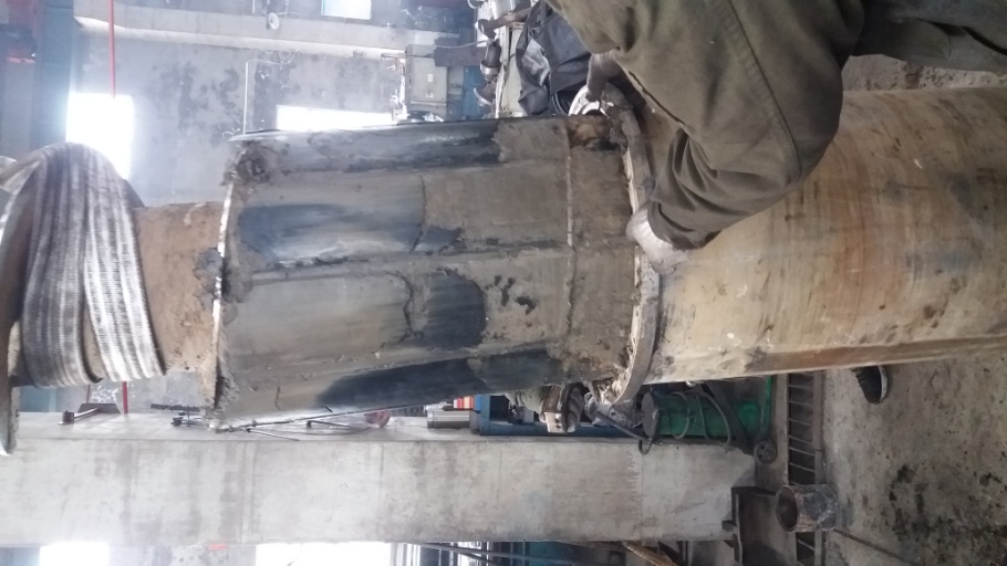 圖中可以看出,螺旋出泥口部位的螺旋葉片已經(jīng)高度磨損