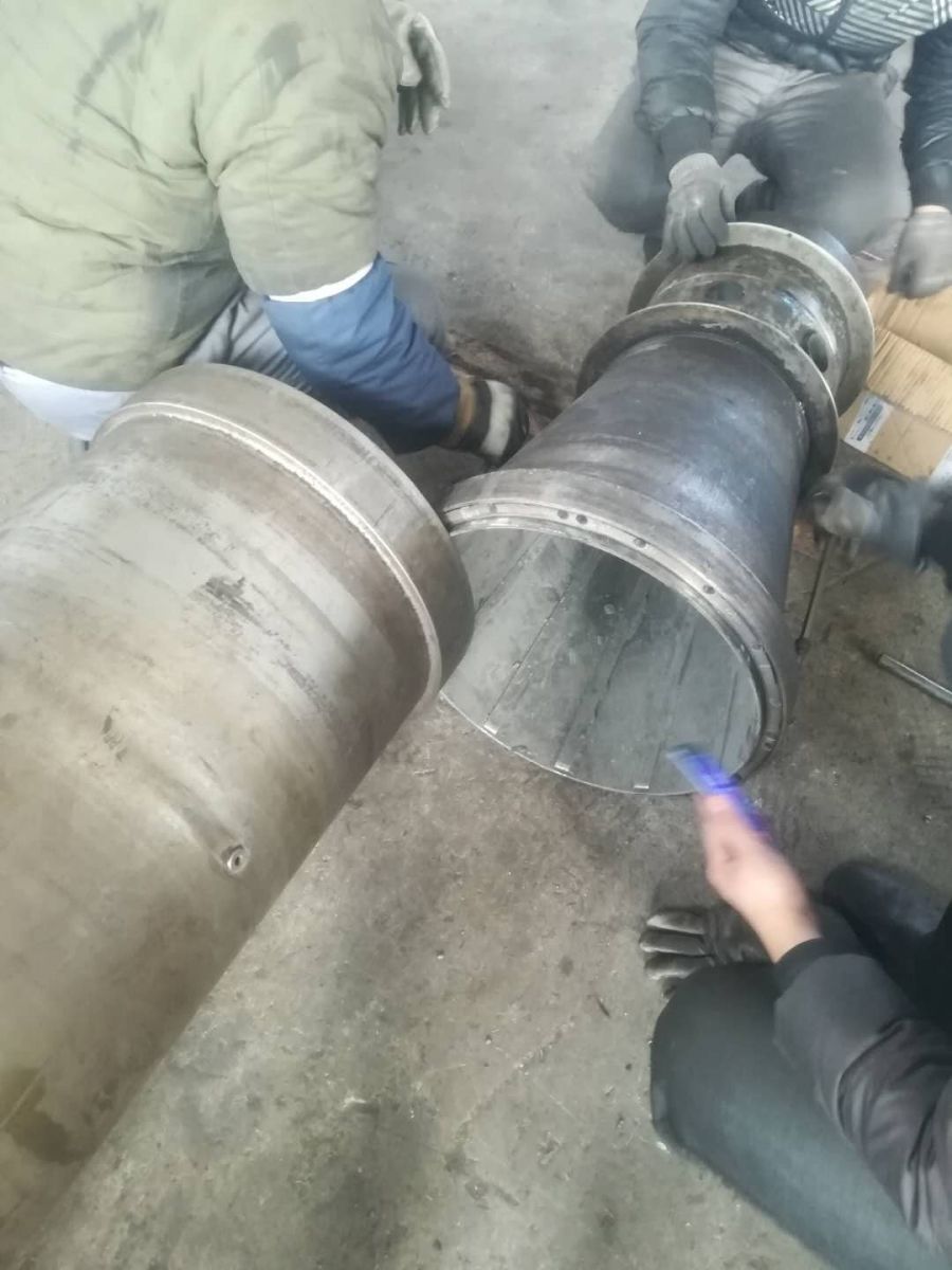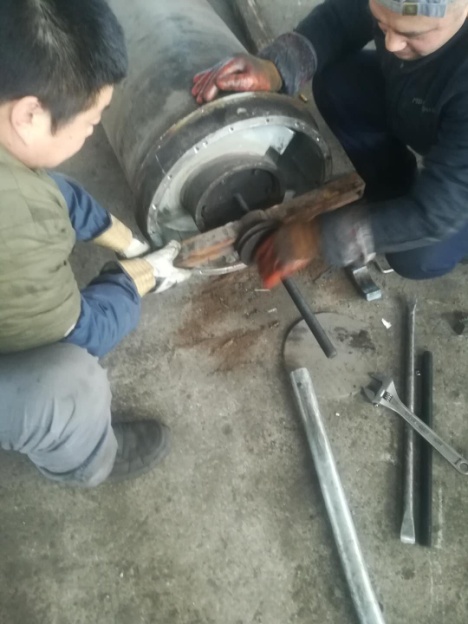 5、小端處理完成,該拆卸大端法蘭,包括進料管和法蘭