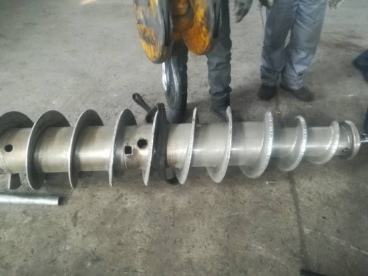 2、螺旋葉片上面的耐磨貼片部分脫落及損壞,還有很多布滿裂紋,均需要更換