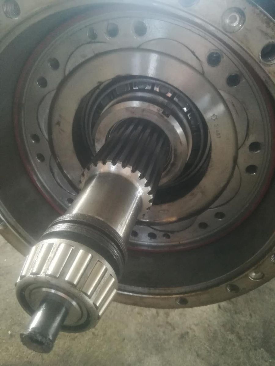 圖中花鍵軸部位的圓錐滾子軸承有一個擋圈,普通工具無法拆卸,需要用專門線切割工具,如下圖